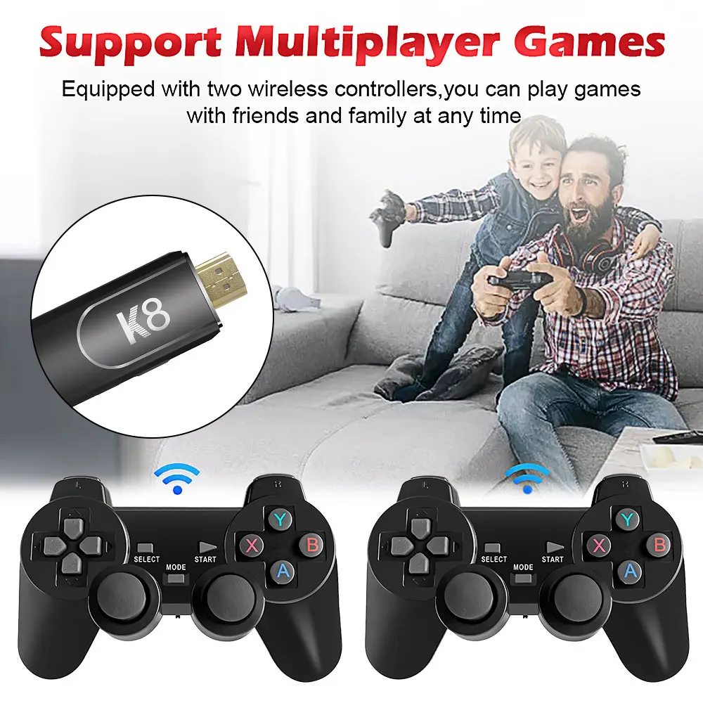 Mando de videojuegos Retro 4K HD K8, 64G, más de 40000 juegos, 40 + emulador, controlador inalámbrico Dual de 2,4G, consola Retro, regalo para niños